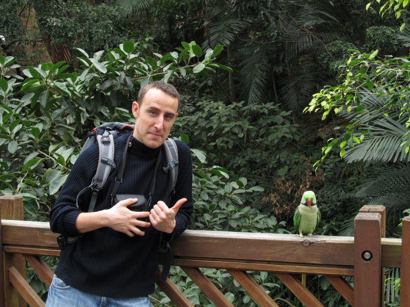 Zuerst haben wir uns im Man Mo Tempel vollständig einräuchern lassen. So gesegnet sind wir dann durch etliche Sträßchen zum Hong Kong Park gepilgert und dort die zahmen und bunten Vögel zu bestaunen.