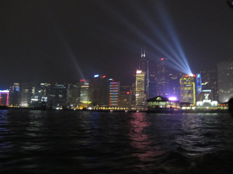Am Abend kamen wir dann gerade noch rechtzeitig zur Symphony of Lights. Diese gigantische Licht&Lasershow wird jeden Abend von den Wolkenkratzern der beiden sich gegenüberliegenden Hong Kong Inseln aufgeführt.