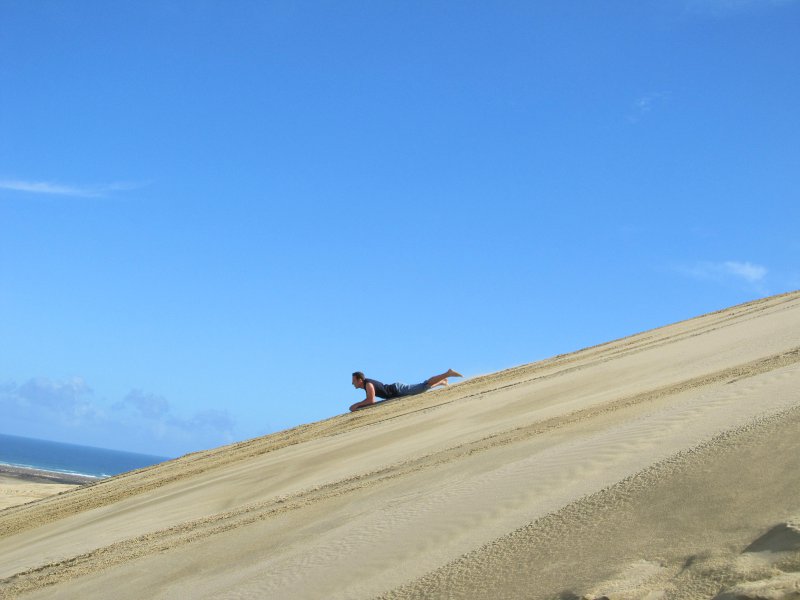 So kamen wir am nächsten Tag über eine Tour zum Cape Reinga, dem nördlichsten Punkt Neusselands, zum Sand-Board’en und zu einer Busfahrt am Sand-Highway des Ninty Mile Beach.