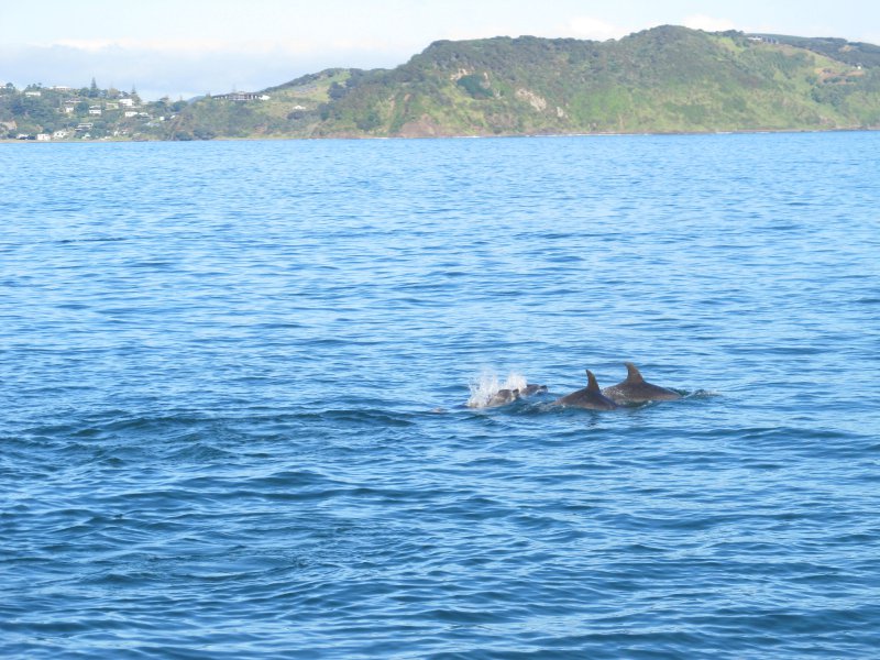 Die angepeilten Delphine waren ein Tag später über eine Bootstour in der Bay of Islands dran: und wir haben sie tatsächlich endlich gesehen.