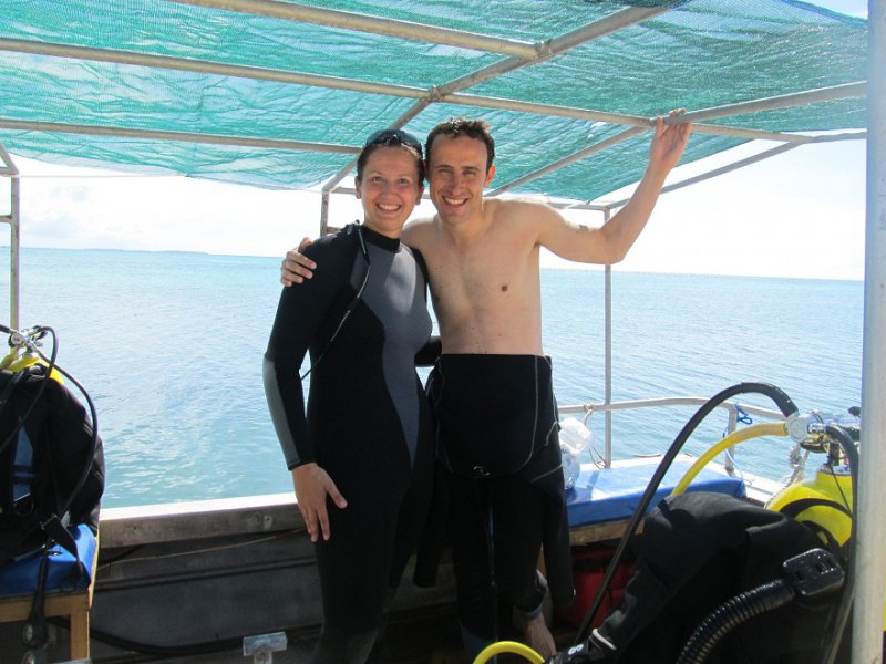 Die wenigen Menschen wurden durch die vielen verschiedenen Tiere auf der Insel ausgeglichen. In der Luft schwirrten alle möglichen Vögel, Papageien und Fledermäuse. An Land gab es einige Pferde, polynesische Hühner (wir wissen nicht wie die heißen) und Geckos und die Unterwasserwelt war einfach atemberaubend. So sahen wir bei unseren beiden Tauchgängen auch viele bunte Korallen und Fische sowie als Highlights einen kleinen großen Riffhai und eine Schildkröte. Beim Schnorcheln hatten wir dann noch eine unheimliche Begegnung mit einer relativ großen Korallenschlange. Die war uns aber beiden nicht wirklich geheuer sodass wir schnell unsere „Flossen in die Hände“ genommen haben und weitergepaddelt sind.